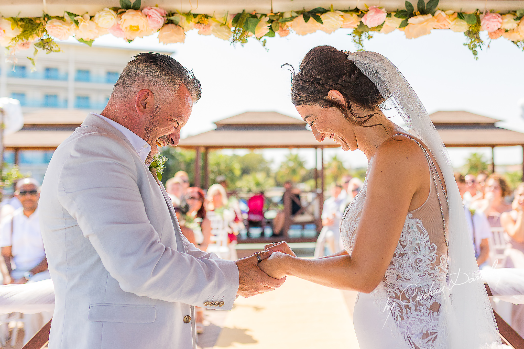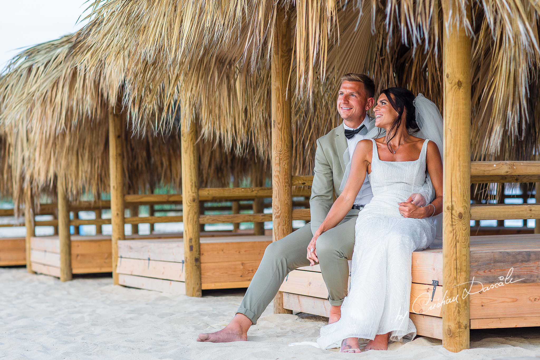 Every time I create wedding photography at Asterias Beach Hotel, I’m reminded why so many couples fall in love with this venue before they’ve even booked a flight to Cyprus. The smooth, golden sand, the shimmering Mediterranean waters, and the peaceful atmosphere make it an extraordinary place to begin a new chapter together.