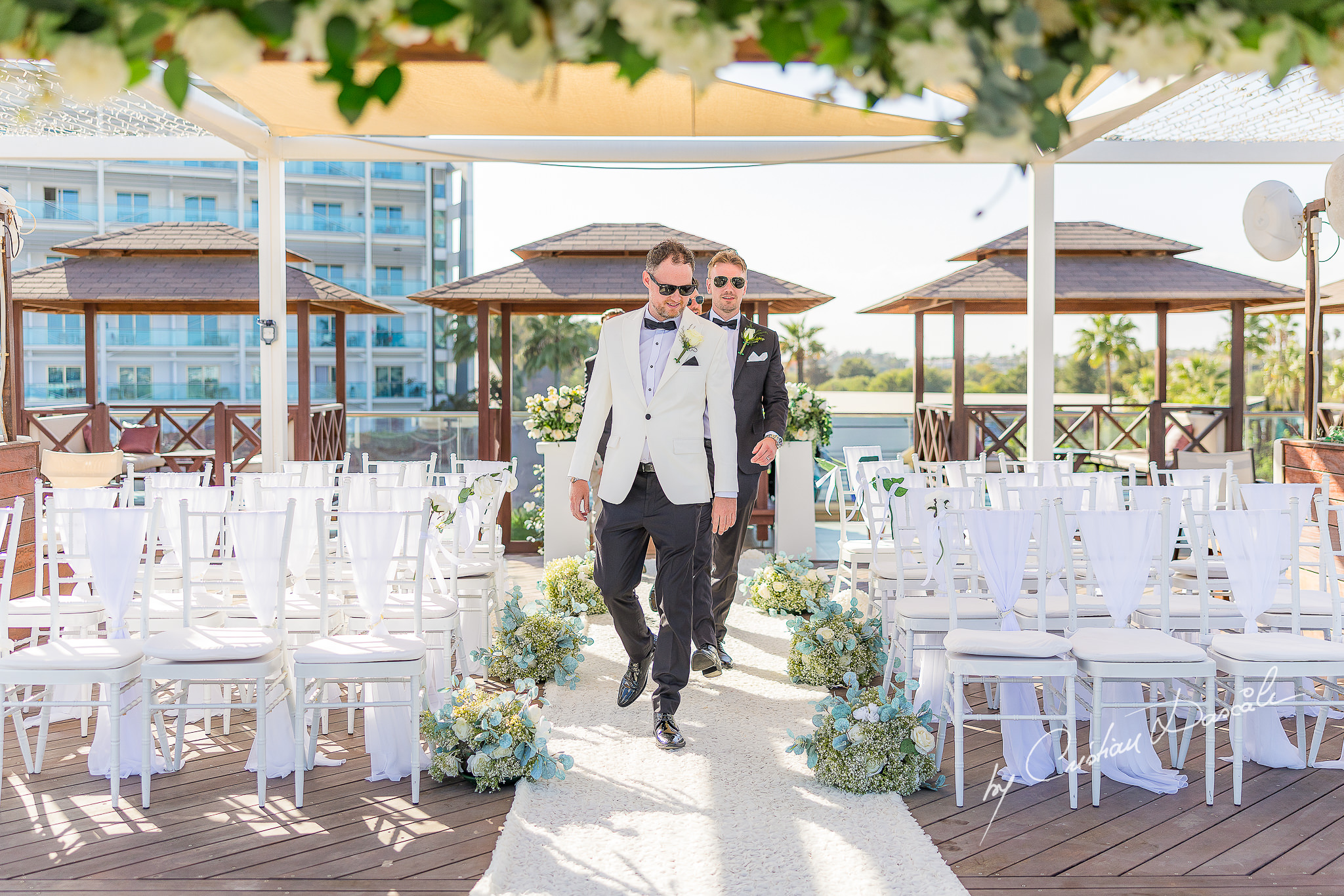 Maybe it’s the wide expanse of turquoise sea that frames the ceremony space. Maybe it’s the way the palms sway lightly in the warm breeze. Or maybe it’s the soft, golden light of Ayia Napa evenings, creating the most flattering, dreamlike glow.